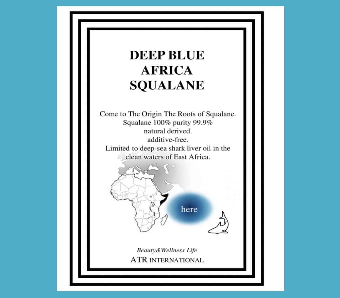 ディープブルー アフリカ スクワランオイル100は、アフリカの東部、インド洋の清浄な海域の深海に棲むサメの肝油から採れたスクワレンを日本で特殊な技術を用いて精製を繰り返して、作られている99.9%の高純度・高品質のスクワランオイルです。天然由来成分、無添加のスクワランオイルですので赤ちゃんからお年寄りまで幅広い年齢の方にご使用いただけます。